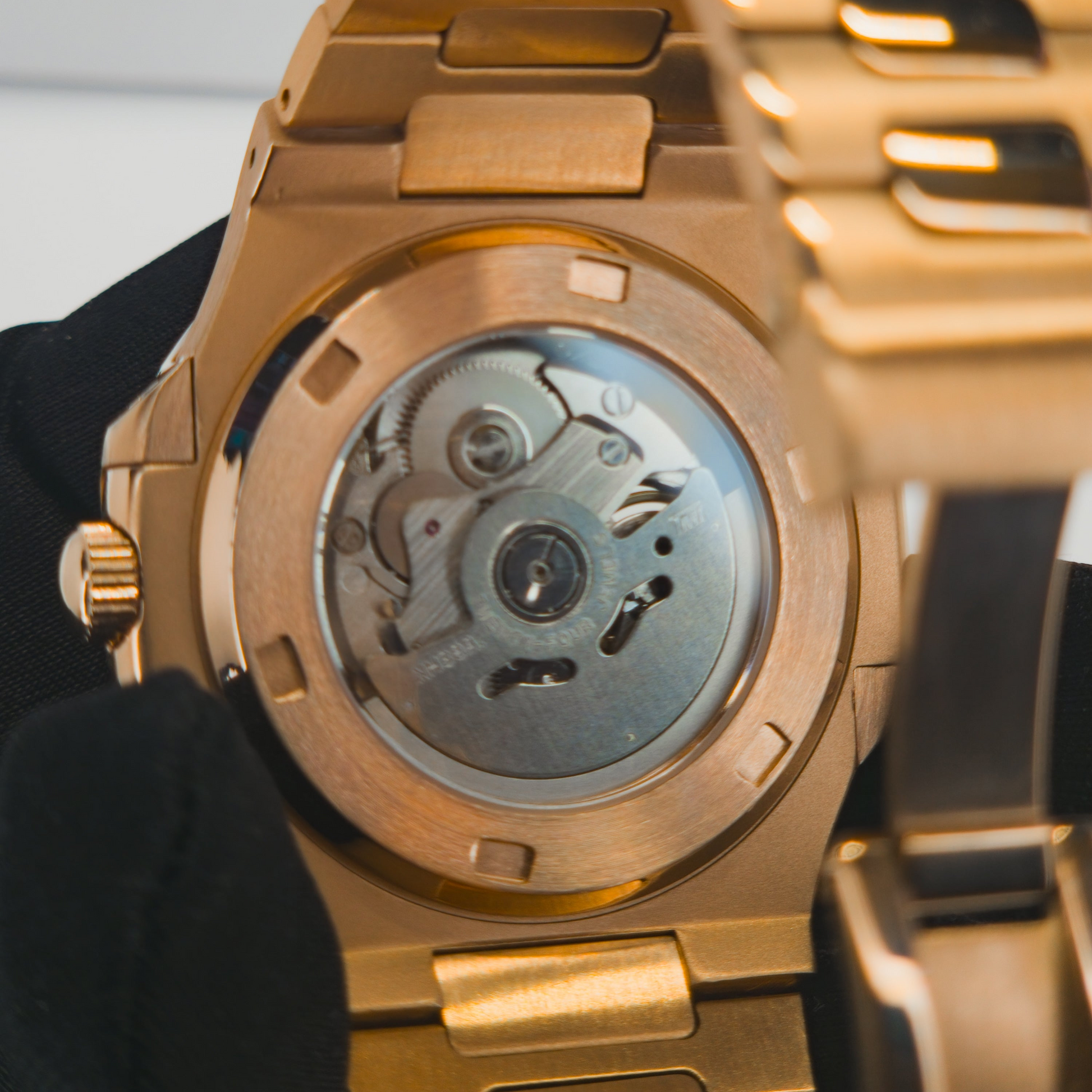 Its chocolate gradient dial, finished with horizontal lines and anΒ open-heart window, reveals the beating movement within. A statement piece designed to captivate from boardroom to after-hours.